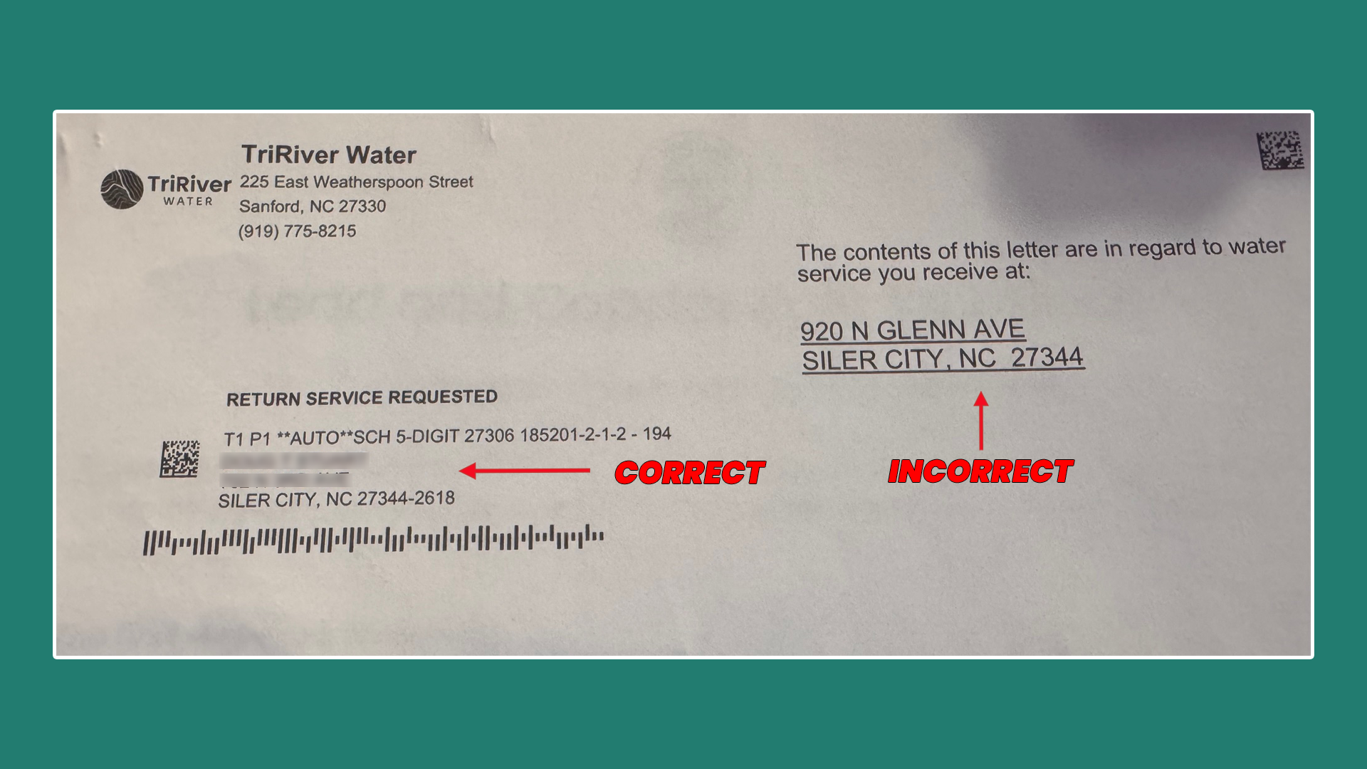 Some TriRiver Water customers in Siler City received letters in mid-November with confusing address information.
